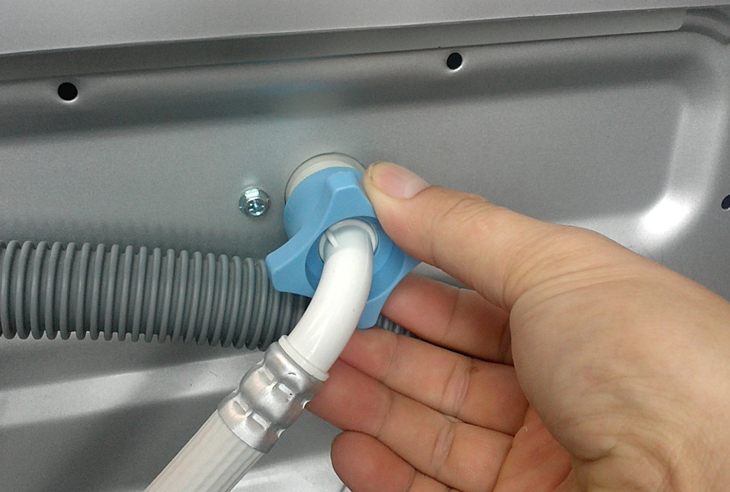 - Bạn hãy tháo dây cấp nước đặt ở phía sau máy giặt ra rồi dùng kìm gắp tấm lưới lọc của van cấp ra vệ sinh sạch sẽ, sau đó bạn lắp chúng vào vị trí ban đầu là được.